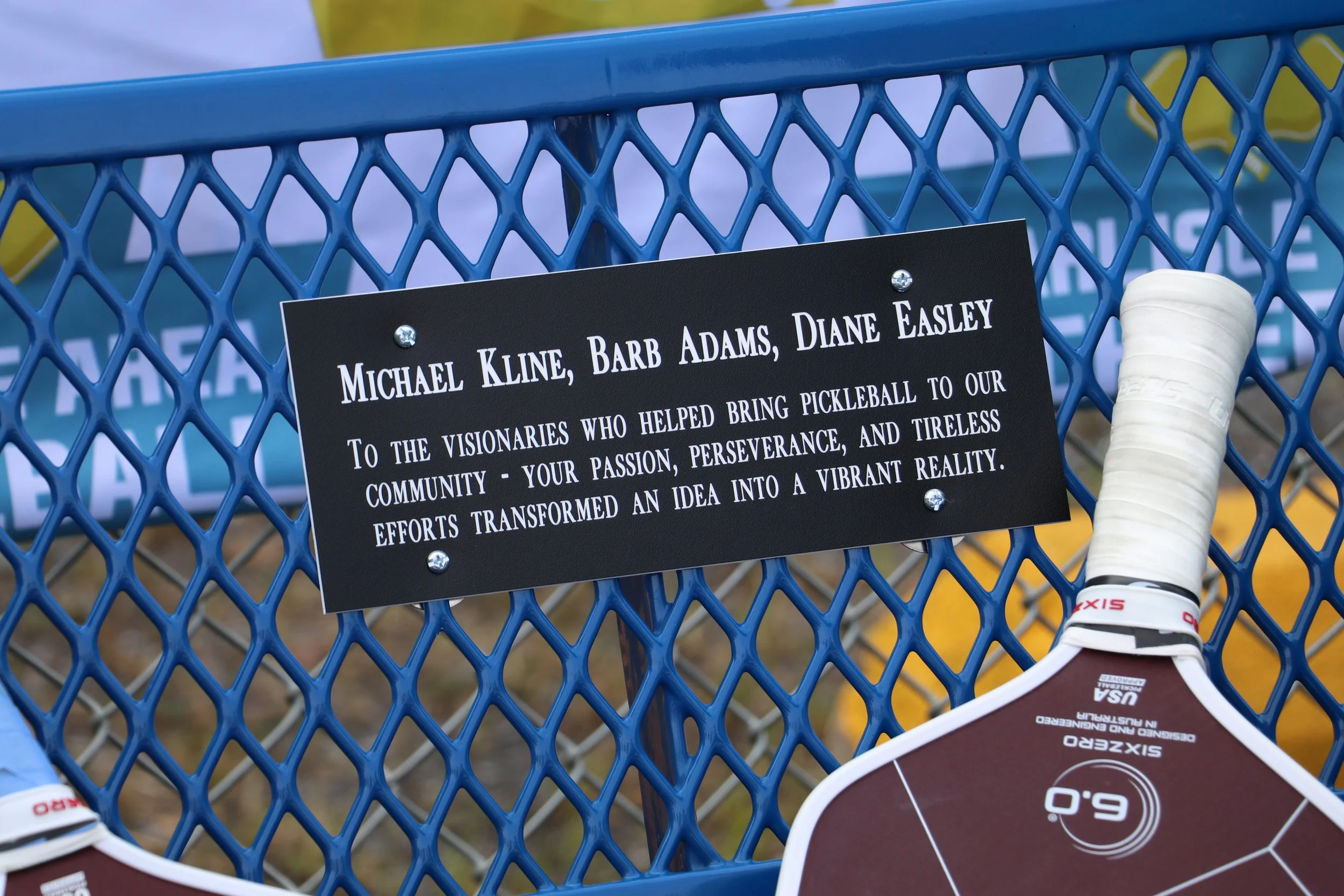 One of the new benches at the courts was dedicated to three of the individuals who were instrumental in helping bring pickleball to Carlisle.